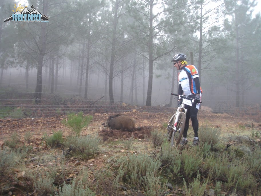 Á partida estavam perto de 250 participantes onde grande parte eram espanhóis, divididos na distância de 30km e 54km tendo esta última 1250m de acumulado. Tendo estado um boa semana de sol fui participar erradamente com equipamento de verão, pois ao fim de alguns quilómetros em passeio e após uma grande subida espectacular entre pinheiros onde já muitos participantes iam já a pé, o nevoeiro serrado estava á nossa espera... Começamos uma grande descida onde pouco ou nada se via á frente e acabei por gelar por completo e para ajudar o percurso tinha muitas passagem por ribeiros com um piso pesado e saturado de agua.